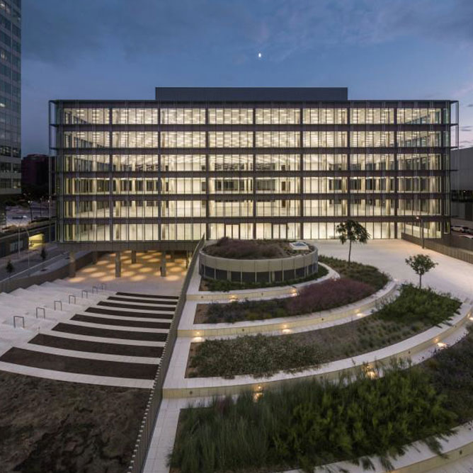 El Distrito Administrativo de la Generalitat, situado en Alts Forns (Barcelona), define una nueva forma de organización administrativa basada en eficiencia, confort y sostenibilidad. El conjunto incorpora espacios exteriores y soluciones ambientales que favorecen el bienestar de las personas y el entorno.